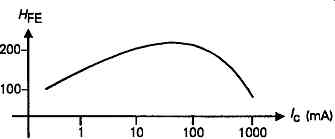 The output impedance of the bipolar transistor is high, so that the relationship between collector current and collector voltage is typically as shown in FIG. 7, for a range of potentials applied to the base. This high output impedance characteristic is often of considerable benefit in bipolar transistor circuit design. Under small-signal use, the input impedance of a junction transistor is dependent on the value of collector current, as shown in FIG. 8, as is also the 'noise figure* (the ratio, in dB, between the random noise introduced by the transistor, as an amplifier, and the thermal noise which would be expected from a perfect amplifier having the same input impedance), as discussed in greater detail in Section 16. With thermionic valves, an important performance characteristic is the 'slope' of the input voltage vs. anode current curve. This is usually called the 'mutual conductance', gnv and expressed as mA/V, or, in con temporary terminology, milliSiemens (mS). Because of their very steep collector current turn-on characteristics, bipolar transistors have very high values of mutual conductance (/C/Vb), measured in Siemens (A/V), but this figure is not usually specified because it depends so strongly on collector current, (7C). This is shown for a small signal and a power transistor in the graphs of FIGs 9a and 9b. The theoretical relationship between mutual conductance and collector current is…where q is the charge on the electron, (1.60 x10^19), k is Boltzmann's constant, (1.38 x10^-23), and T is the absolute temperature. For a junction temperature of 25° C (298° K), this equation gives a calculated value of 38.9S/A. In practice, the actual value for gm in a transistor will be influenced by its construction. Typical values of 'mutual conductance' for silicon bipolar transistors, as a function of collector current, lie in the range 15-45 S/Ampere. Because the junction transistor is a conductive element, in which the output and input circuits will interact with one another, the relatively simple methods for calculating circuit performance which were used with thermionic valves were not of use with transistors.