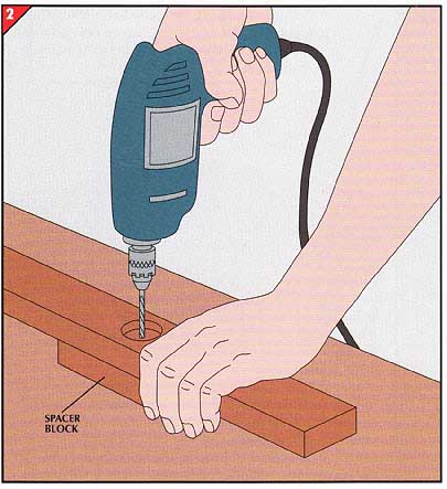 • To make an extension table for a table saw, start with the inside rail that will abut the edge of the saw table, and cut a 1 -by-2 rail 1½-inches shorter than the edge. • Clamp the rail to the edge of the saw table with its top flush with the top of the table. On the rail, mark the holes along the table’s edge (above). • Counterbore a 3/8-inch-deep hole at each mark with a 1 -inch spade bit, then drill through the center of the holes with a 5/16-inch twist bit. • For every 1½-inches of extension table width you want to add, cut one rail to the same length as the inside rail and two 4-inch 1 -by-2 spacer blocks. • Cut a 1 -by-4 outside rail the same length as the other rails. • Center a spacer block under one of the holes in the inside rail and line up the edges of the two pieces. Drill a matching hole through the spacer block. • Use the spacer block as a guide to bore holes in the remaining blocks; use the inside rail as a guide for drilling 5/16-inch holes through the other rails. Mark the top of each piece after drilling it so the holes can be lined up quickly when you assemble the table. • Counterbore the outside rail as you did the inside rail. • With a hacksaw, cut two 1/4-inch threaded rods 1 inch longer than the extension-table width; put a washer and a nut on one end of each rod. • Set the top edge of the outside rail on a flat surface and slide the rods through its holes. • Thread the rest of the spacers and rails onto the rods, spreading a thin coat of wood glue on both sides of the spacer blocks as you go. • Slip on the inside rail so its counterbored surface will butt against the saw table. • Put a washer and a nut onto the outer ends of both rods, seating them in the counterbored cavities. • With the assembly perfectly flat, tighten the nuts until the glue begins to squeeze out and about 1 inch of threaded rod extends from the holes in the inside rail. • For the front and back of the extension table, cut two 1 -by-4s as long as its width. • Holding one piece so its top edge is flush with the extension-table top, drill pilot holes through the board into the end of each rail. • Spread glue on the rail ends and secure the piece with 1½” No. 8 wood screws. • Attach the piece on the other side in the same manner. • Slide the protruding ends of the threaded rods through the holes in the side of the saw table and prop up the other end of the extension table so it is level. • Cut two 2-by-2 legs 1½” shorter than the height of the extension-tabletop. • Holding a leg inside one corner of the extension table, drill four staggered pilot holes through the frame pieces and into the leg. • Attach the leg with 2-inch screws. Fasten the other leg in the same way. • Under the saw table, thread a lock washer and a nut onto each of the threaded rods and firmly tighten the nuts. Extending a Radial-Arm Saw Since the typical radial-arm saw lacks a convenient edge for bolting on an extension table, attach a permanent 2-by-2 connecting strip to the saw table. • Build the extension table to the desired height and width as for a table saw. • Cut a 2-by-2 to the same length as the extension table’s inside rail, drill pilot holes for 2½” No. 8 wood screws through the 2-by-2 and into the underside of the saw table, and fasten it in place. • To attach the extension table, position it against the saw table and drill pilot holes for 2 1/4-inch screws through the 2-by-2 and into the inside rail, then screw the pieces together (inset). Making a Roller Stand • Cut two 30-inch-long uprights from 1 -by-6 stock. Starting at one end, cut a 14-inch-long, ¼-inch wide slot down the middle of each upright with a saber saw. • Cut two rails 19 ½-inches long and a crosspiece and two feet 18 inches long. • Tack 3/4- by 3/4- by 3-inch pads to the underside of the feet to keep the stand from wobbling. • Aligning the pieces with a carpenter’s square, hold a foot and an upright in a perfect “T.” Drill pilot holes through the joint, and fasten the pieces together with 1 1/4-inch No. 8 wood screws. Join the opposite foot and upright in the same way. • Fasten the rails to the uprights, making sure that they are perpendicular to each other. • Attach the crosspiece to the uprights just below the slots. • As a guide for the roller frame, cut 3/4– by 3/4-inch cleats as tracks. With glue and 1 1/4-inch common nails, fix the cleats to the uprights about inch from the outside edges. • From 1 -by-4 stock, cut four pieces to construct a 10- by 18-inch frame for the roller. Assemble the frame with glue and 1 1/4-inch screws. • Screw the roller assembly to the frame or, instead of a roller assembly, fasten plate-mounted casters or commercial roller balls (inset) to the frame. • Bore a 1/4-inch hole in the middle of each side of the frame and about 3 inches from the bottom, and push 1/4- by 2½” carriage bolts through the holes from the inside out. • Lower the frame into the tracks so the carriage bolts slide down the slots. Set the roller at the desired height, then add a washer and a wing nut to each carriage bolt; tighten the nuts to hold the roller in position. Building a Table-Saw Crosscut Jig A jig like the one above will help you make accurate crosscuts with a table saw. • From 3/4-inch plywood, cut the base 25 inches deep and as wide as the saw table, but no wider than 36 inches. • Cut two 25-inch-long hardwood runners to fit the saw table’s miter slots. • Drill countersunk pilot holes 3 inches from each end of the runners. • Place the runners in the miter slots and slide them out to overhang the back end of the table. Position the base squarely over the runners and fasten it with 7/8-inch No. 6 wood screws (inset). Slide the base for ward and drive in the screws at the front end. • Cut the support frame and guide from 2-by-4 stock to the width of the base. • From a 2-by-2, cut the reinforcing blocks 8 inches long; wi