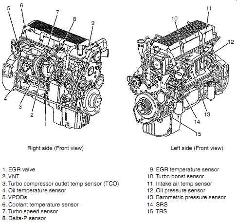 Throttle position sensor The TPS is located under the accelerator pedal and generates a pulse-width signal that can read with a Fluke Model 97 or equivalent multimeter and a breakout box. The breakout consists of three 12-in. long No.10 AWG wires that bridge the harness connectors and three 6-in. long No. 12 AWG wires that make up to the meter. 1. Using Caterpillar PN 1U5804, crimp Deutch DT 04-3P-E008 male connectors to one end of each of the three long wires and DT 04-3P-E003 female connectors to the other ends. See FIG. 22. 2. Make up DT 04-3P-E003 female connectors to one end of each of three short wires. These connectors plug into the meter receptacle. 3. Solder the three short wires to the centers of the longer wires. Set the meter to measure pulse-width percentage and, with the ignition switch "on," depress the accelerator pedal. Pulse width varies with make and model, but should be in the neighborhood of 80-90% at wide-open throttle and drop to 10 or 20% with the pedal at rest. A spare TPS is good insurance. === TBL. 3. Partial listing of caterpillar HEUI trouble codes PID and FMI Flash code Description 01-11, 2-11 72 Cylinder 1 or 2 fault 3-11, 4-11 73 Cylinder 3 or 4 fault 5-11, 6-11 74 Cylinder 5 or 6 fault 22-13 42 Check timing sensor calibration 41-02, 41-03 21 8V supply above or below normal 42-11 18 IACPV fault 64-02, 64-11 34 Loss of engine rpm signal, or loss of signal pattern-No. 2 speed and timing sensor 91-08 32 Invalid throttle signal 91-13 28 Check throttle sensor calibration 102-03, 102-04 25 Boost pressure sensor circuit open or shorted 105-03, 105-04 38 Intake-manifold air temp. sensor circuit open or shorted 108-03, 108-04 26 Atmospheric pressure sensor circuit open or shorted 110-10 61 High coolant temp. warning 110-03, 110-04 27 Coolant temp. sensor circuit open or shorted 111-01 61 High coolant temperature 111-02 12 Coolant level sensor fault 164-00 17 Injector-actuation pressure out of range 164-02 15 Injector actuator pressure sensor erratic 164-03, 164-02 15 Injector actuator pressure circuit open or shorted 164-11 39 Injector actuation pressure system fault 168-02 51 Intermittent battery power to ECM 190-02, 190-11 34 Loss of engine rpm signal or no pattern to signal-No. 1 speed and timing sensor === Trouble codes TBL. 3 lists the most critical DTCs for this system. PID (parameter identifier) is a two- or three-digit SAE numerical code assigned to each component. For example, 91 refers to the throttle position sensor. FMI is a failure mode identifier used to describe the kind of failure detected, and flash refers to the number of blinks the code triggers on the "check engine" lamp. Some codes are merely informational and don’t affect engine performance. Active codes, that is, those that turn on the diagnostic lamp and keep it on, mean that the problem requires immediate attention. The lamp will go out when the malfunction is repaired. Intermittent malfunctions, often caused by loose harness connectors or bad grounds, cause the lamp to blink and go out. These codes are then logged in computer memory, where they can be retrieved and erased with the appropriate scanner. Intermittent codes that are logged repeatedly need investigation. Ford (International) 7.3L DI power stroke Four engines, three of them built by International, go by the name "Power Stroke." The first was the direct injection turbocharged 7.3L V-8. This engine, also known as the International T444E, powered F series trucks and E series vans between 1994 and 2003. The 32-valve 6.0L Power Stroke, or International VT 365, has been used on pickups and vans since 2004. Production of the 6.0 will end in 2007, when it will be replaced by a 6.4L V-8. The Ford V-6, aka DT17, has been used on low cab forward (LCF) trucks since 2005. In many ways, the original 7.3L Power Stroke is the most interesting of the group. It carried Ford to first place in light diesel truck sales and generated a cult following not seen since the days of the Mustang. People have taken out second mortgages on their homes to buy these trucks. The material dealing with the operation of HEUI injectors, the high-pressure oil pump, and the IAPCV also applies to the Power Stroke, although Caterpillar and Ford parts rarely interchange and pressure specifications vary. TBL. 4 translates Ford acronyms and describes sensor function. "Supply" is the voltage going to the sensor; "signal" is the sensor output to the computer (ECM). TBL. 4. Power stroke sensor nomenclature and function Slow or no-start Begin with a walk-around the vehicle to determine that the tank is at least a third full, batteries are charged, battery terminals are clean and secure, and the radiator is topped off. Check the crankcase and high-pressure pump reservoir oil levels. Ford requires a 15W40 oil that meets SH, CG-4, and Mack E-0L specifications, and recommends that Motorcraft 15W40 "black-lid" be used because of its resistance to aeration. The oil level should come to within one inch of the top of the pump reservoir. Question the operator to learn as much as possible about the problem and conditions that led up to it. Did it appear suddenly? After repairs to the engine? What parts were replaced? Does the malfunction occur at all engine temperatures or only during cold starts? Mechanics differ about what checks to make first. But, however you sequence them, the main bases to touch with 7.3L are: 1. Replace the air filter and examine the exhaust system for restrictions. The exhaust butterfly valve, which should cycle closed on cold startups, may stick shut. The back-pressure regulator that controls this valve can also fail. 2. Retrieve active (current) and historical trouble codes. P1111 means that no codes are set and, as far as the ECM knows, things are normal. 3. Drain a sample of fuel from the filter while cranking. If water is present, drain the tank(s) and refill with clean fuel before proceeding. Inspect the water separator for oxidation damage and, if neces
