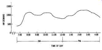 The average demand of an industry or commercial building is the average electrical power used over a specific time period. The peak demand is the maximum amount of power (kW) used during that time period. The load profile shown in FIG. 1 shows a typical industrial demand-versus-time curve for a working day. Demand peaks that far exceed the average demand cause a decrease in the load factor ratio. Low load factors result in an additional billing charge by the utility company. Utility companies must design power distribution systems that take peak demand time into account, and ensure that their generating capacity will be able to meet this peak power demand. Therefore, it is inefficient electrical design for an industry to operate at a low-load factor, since this represents a significant difference between peak-power demand and aver age-power demand. Every industry should attempt to raise its load factor to the maximum level it can. By minimizing the peak demands of industrial plants, power demand control systems and procedures can help increase the efficiency of our nation's electrical power systems. Be careful not to confuse the load factor of a power system with the power factor. The power factor is the ratio of power converted (true power), to the power delivered to a system (apparent power). If necessary, you should review power factor. Most industries use a large number of electric motors; therefore, industrial plants represent highly inductive loads. This means that industrial power systems operate at a power factor of less than unity (1.0). However, it is undesirable for an industry to operate at a low-power factor, since the electrical power system will have to supply more power to the industry than is actually used. A given value of volt-amperes (voltage × current) is supplied to an industry by the electrical power system. If the power factor (pf) of the industry is low, the current must be higher, since the power converted by the total industrial load equals VA × pf. The value of the power factor de creases as the reactive power (unused power) drawn by the industry in creases. This is shown in FIG. 2. We will assume a constant value of true power, in order to see the effect of increases in reactive power drawn by a load. The smallest reactive power shown (VAR1) results in the volt ampere value of VA1. As reactive power is increased, as shown by the VAR2 and VAR3 values, more volt-amperes (VA2 and VA3) must be drawn from the source. This is true since the voltage component of the supplied volt-amperes remains constant. This example represents the same effect as a decrease in the power factor, since pf = W/VA, and, as VA increases, the pf will decrease if W remains constant. Utility companies usually charge industries for operating at power factors below a specified level. It is desirable for industries to "correct" their power factor to avoid such charges and to make more economical use of electrical energy. Two methods may be used to cause the power factor to increase: (1) power-factor-corrective capacitors, and (2) three phase synchronous motors. Since the effect of capacitive reactance is opposite to that of inductive reactance, their reactive effects will counteract one another. Either power-factor-corrective capacitors, or three-phase synchronous motors, may be used to add the effect of capacitance to an AC power line. An example of power factor correction is shown in FIG. 3. We will assume from the example that both true power and inductive reactive power remain constant at values of 10 kW and 10 kVAR. In FIG. 3A, the formulas show that the power factor equals 70 per cent. However, if 5-kVAR capacitive reactive power is introduced into the electrical power system, the net reactive power becomes 5 kVAR (10-kVAR inductive minus 5-kVAR capacitive), as shown in Figure 11 3B. With the addition of 5-kVAR capacitive to the system, the power factor is increased to 89 percent. Now, in FIG. 3C, if 10-kVAR capacitive is added to the power system, the total reactive power (kVAR) becomes zero. The true power is now equal to the apparent power; therefore, the power factor is 1.0, or 100 percent, which is characteristic of a purely resistive circuit. The effect of the increased capacitive reactive power in the system is to increase or "correct" the power factor and, thus, to reduce the current drawn from the power distribution lines that supply the loads. In many cases, it is beneficial for industries to invest in either power-factor-corrective capacitors, or three-phase synchronous motors, to correct their power factor. Calculations may be simplified by using the chart of TABLE 1. Utility companies also attempt to correct the power factor of the power distribution system. A certain quantity of inductance is present in most of the power distribution system, including the generator windings, the transformer windings, and the power lines. To counteract the inductive effects, utilities use power-factor-corrective capacitors. Capacitors for Power Factor Correction Static capacitors are used for power factor correction in the system. They are constructed similarly to the smaller capacitors used in electrical equipment, which have metal-foil plates separated by paper insulation. Ordinarily, static capacitors are housed in metal tanks, so that the plates can be immersed in an insulating oil to improve high-voltage operation. The usual operating voltages of static capacitors are from 230 volts to 13.8 kilovolts. These units are connected in parallel with power lines, usually at the industrial plants, to increase the system power factor. Their primary disadvantage is that their capacitance cannot be adjusted to compensate for changing power factors. Power factor correction can also be accomplished by using synchronous capacitors connected across the power lines. (Three-phase synchronous motors are also called synchronous capacitors; see Section 14 for a discussion of three-phase synchronous moto